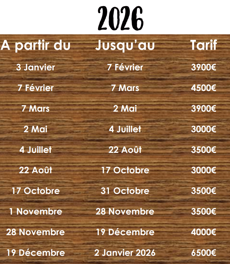 Loyer et caution à régler 3 mois avant la location dont 50% du loyer à la réservation, si réservation à moins de 3 mois, 100% du loyer et la caution doivent être réglés au moment de la réservation